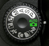 It is a large rotatable circle that has the modes listed as “P”, “S”, “A” and “M” in Nikon and “P”, “Tv”, “Av” and “M” in Canon, plus several picture icons.